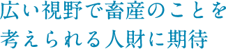 畜産物の安定供給に資する私たちの業務は、非常に幅広いものがあります。政府関係機関やJAとの連携も欠かせません。そのため、広い視野が求められます。例えば、消費者との交流を図るイベント等にも携わる機会も数多くありますが、それだけを求めて入会されても期待に副うことはできません。和牛等家畜の登録・審査業務や経営支援業務では、地域JAの協力を得て現場に出向くこともあります。また、生産者と消費者の間に立つ第三者的な視点も欠かせません。自分の枠にとらわれず、こうした業務に積極的に取り組む気持ちを持った人財を求めています。