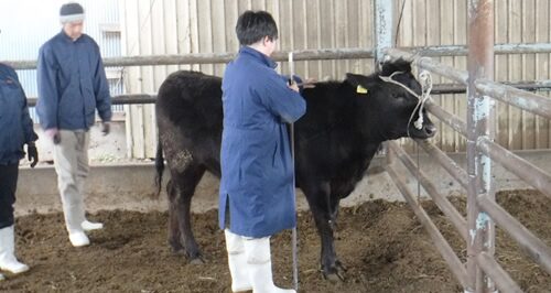 肉用牛の和牛は、生まれると一頭一頭、検査を行い、子牛登記書を作成します。また、母牛となる雌牛は、繁殖供用前に、登録審査を受検し、体格や肉付き、品位、骨格、顔相などを数値化して、母牛としての能力が合格となるか判定も行います。これらは、いずれも肉質や肉量及び繁殖能力の向上を図ることが目的です。目で見て客観的に数値化するのは簡単なことではありませんが、それだけに関係者に審査結果を認めてもらったときの喜びは、とても大きなものがあります。