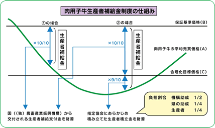 肉用子牛生産者補給金制度は、牛肉の輸入にかかる事情の変化が肉用子牛の価格等に及ぼす影響に対処するため、肉用子牛の価格が低落し、保証基準価格を下回った場合に、生産者に対し生産者補給金を交付し、肉用子牛生産の安定等を図ることを目的としています。