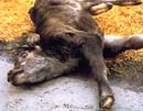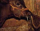 ▲起立不能に陥るとともに盲目となった胎子感染型の新生子牛