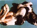 ▲四肢の異常と脊柱の湾曲を示す流産胎子
