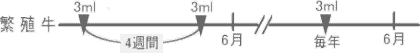 ●1ml注射。繁殖牛のみ、妊娠牛も注射する。