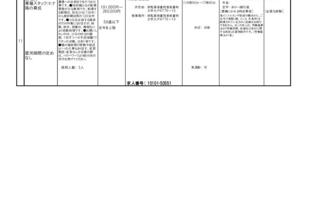 掲載されている求人の詳細は、求人番号により最寄りのハローワーク内に設置されている求人検索機、または、ハローワークインターネットサービスなどでご覧いただけます。
