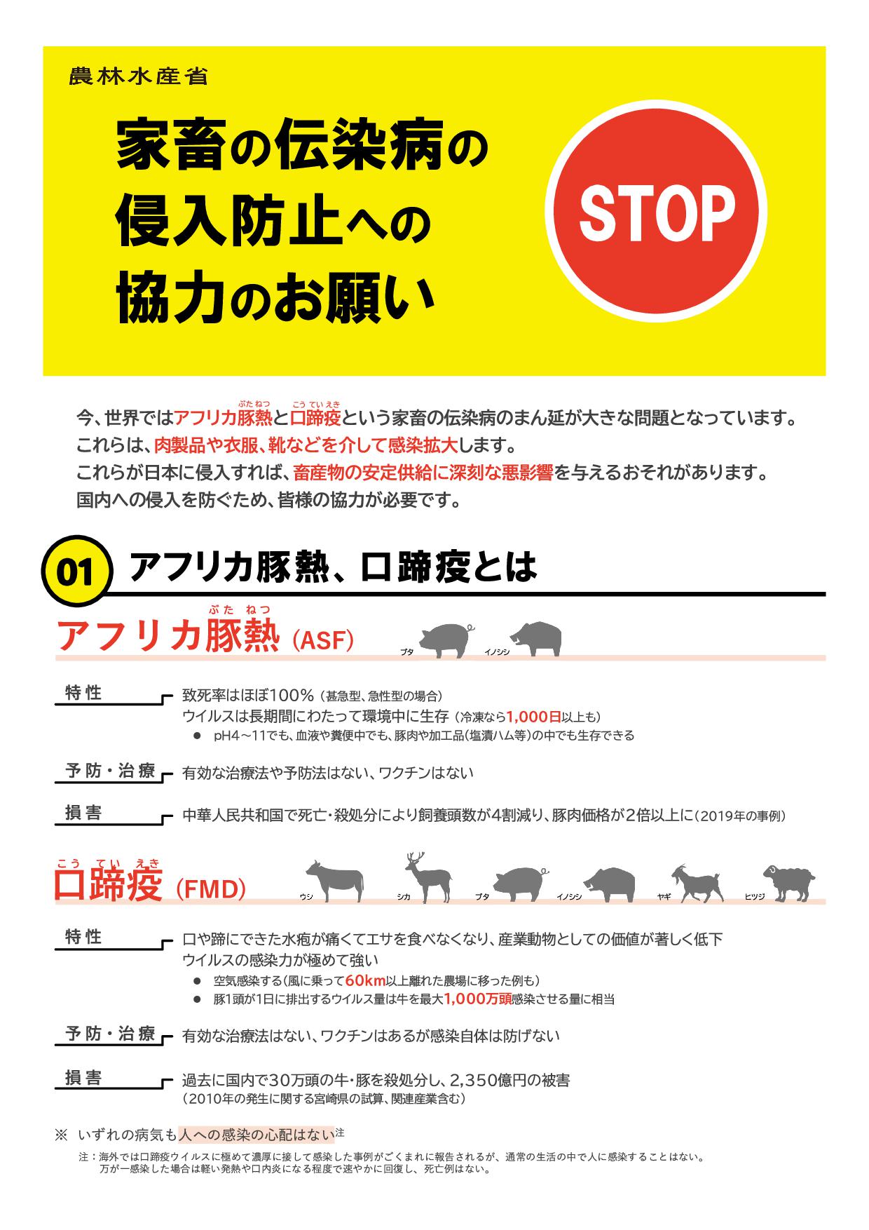 家畜の伝染病の侵入防止への協力のお願い